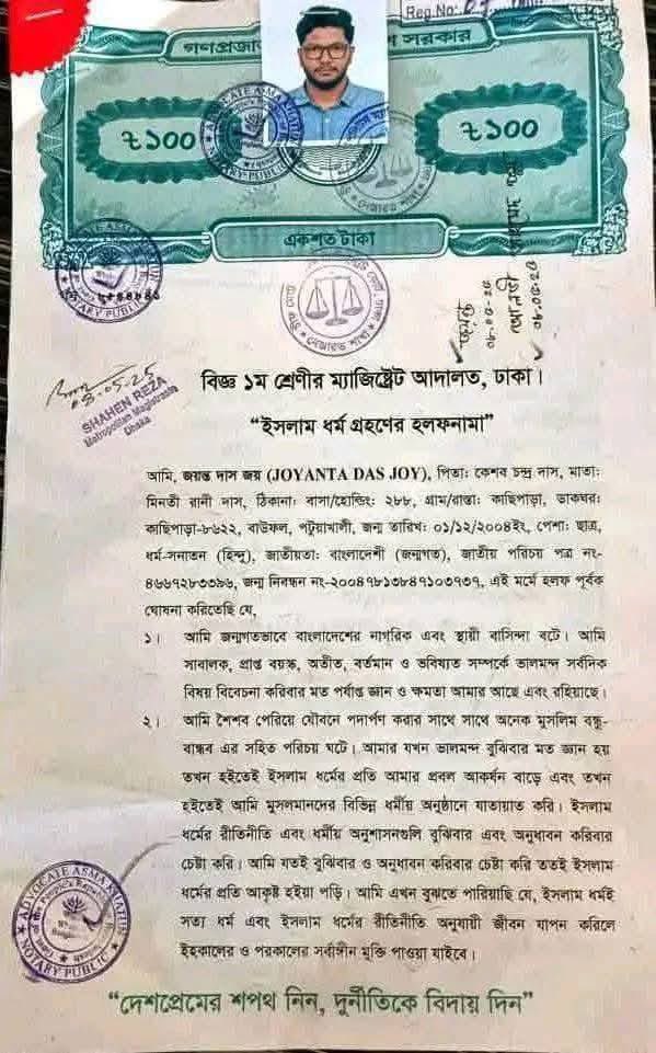 नारायणगंज🇧🇩 – नारायणगंज से एक दिल दहला देने वाली घटना सामने आई है, जहाँ 29 वर्षीय युवक ने विवाह के लिए इस्लाम धर्म अपनाने के बाद व्यक्तिगत और
